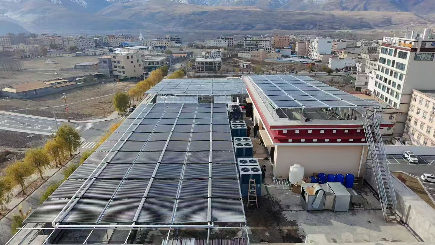 甘孜縣,隸屬四川省甘孜藏族自治州,位于甘孜藏族自治州西北部,雅礱江上游,屬大陸性高原季風(fēng)氣候。甘孜縣城海拔3390米,夏季(7月) :月均日照時數(shù) 177.4小時 ,冬季(3月) :月均日照時數(shù) 237.9小時 ,年日照時數(shù)可達(dá)2642小時,為四川省內(nèi)最高,于是又有了“小太陽城”的美喻。結(jié)合當(dāng)?shù)厝照諘r長等因素,我公司四川勇望新能源科技有限公司最終確定以太陽能加空氣能的方案,以確保滿足甲方采暖和熱水供應(yīng)要求,最終經(jīng)過雙方多次協(xié)商后簽訂項(xiàng)目合作。通過我公司項(xiàng)目部同事近一個月的安裝、調(diào)試,現(xiàn)該項(xiàng)目已全面順利完工通過驗(yàn)收并已交付使用。